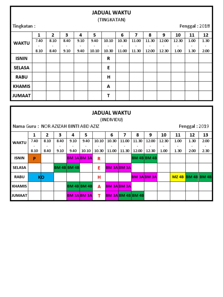 Bagi kedudukan kelas yang jauh para guru perlulah datang dengan lebih awal supaya tiada apa apa berlaku sewaktu pertukaran guru mata pelajaran. 8182019 template jadual waktu kelas 12 mt t1 mt t1 bm t1 bm t1 bm t1 mt t2 bm t2 bm t2 bm t1. Jadual waktu kelas kosong malaykann.